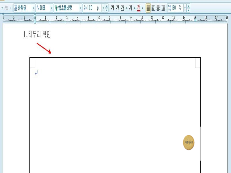 위와 같이 문서에 테두리가 적용된 것을 알 수 있습니다. 쪽 테두리에 대해서 추가로 더 알아야 할 것이 있습니다. 테두리를 적용했는데 문서에 보이지 않는 경우가 있습니다. 그것은 쪽 윤곽이 꺼져 있어서 쪽 테두리가 화면에 표시되지 않는 것입니다. 쪽 윤곽을 켜는 방법을 알아보겠습니다. 매우 쉽습니다.