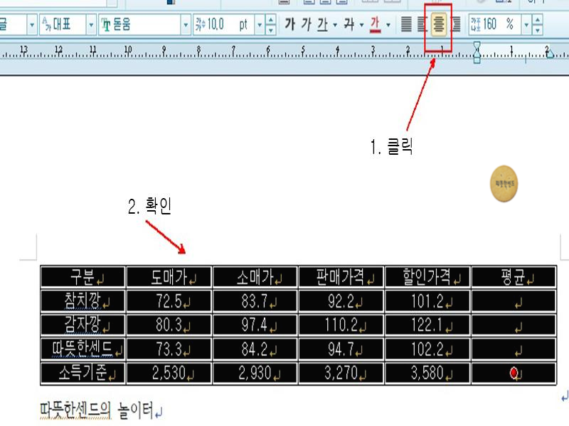 위와 같이 평균이 구해진 것을 알 수 있습니다. 이렇게 해서 표에 대한 기능을 알아 보았습니다. 이것으로 한글 표 작성하기 한글2010을 마치겠습니다. 긴 글 읽어주셔서 감사합니다.