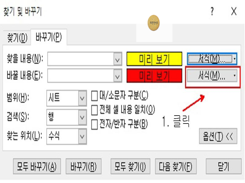 이어서 [바꿀 내용]의 '서식'을 클릭합니다.
