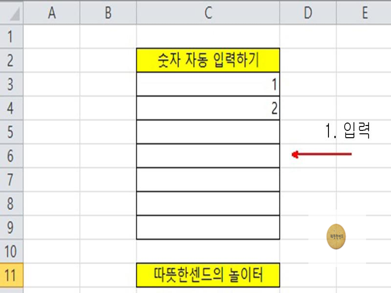 숫자를 자동 입력하기 위해 위와 같이 서식과 값을 입력합니다. 손을 푼다 생각하고 가벼운 마음으로 입력합니다.