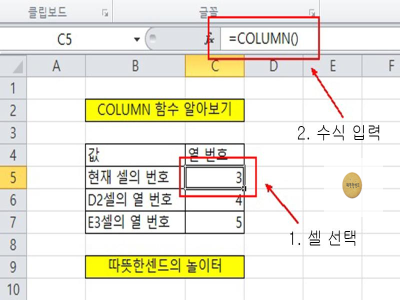 COLUMN 함수는 셀 주소에 대한 열 번호를 알아내는 함수로, 행의 위치에 관계없이 1열에서부터 계산한 해당 열에 대한 번호를 반환합니다.
