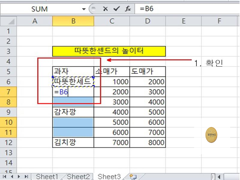 B6:B12셀에서 빈 센들만 선택된 것을 알 수 있습니다.