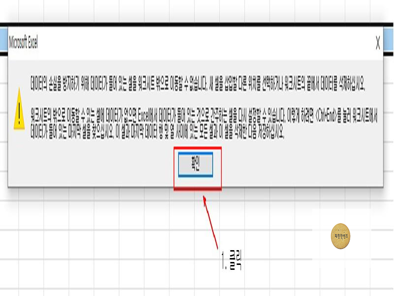 행이나 열을 삽입하려고 시도하려면 위와 같은 에러 메시지가 나타나면서 더 이상의 작업은 힘듭니다. 이처럼 누군가의 장난은 다른사람에게는 당황스러움을 안겨주게 됩니다. 이런 메시지를 접하더라도 놀라지 말고 이렇게 대처해보시기 바랍니다.