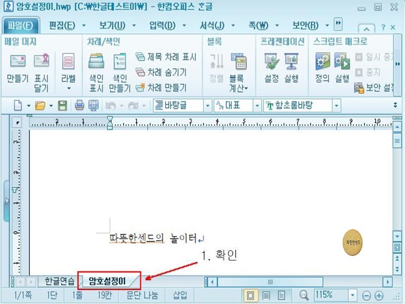 [환결 설정]에서 [현재 창에 새 탭으로]를 체크 하였다면 [파일] - [불러오기]를 클릭하여 저장해 두었던 한글 파일하나를 실행시킵니다. 그러면 불러온 한글 파일이 새 탭으로 나타난 것을 확인 할 수 있습니다. 이것으로 한글 불러오기에 대한 환경 설정하기 한글2010을 마치겠습니다. 긴 글 읽어주셔서 감사합니다.